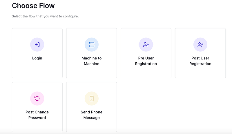 Actionstab in the sidebar towards your left. Go to theFlowsCategory to set up the flow of our Login. SelectLogin Flow. This will run the flow of action once the trigger is executed.