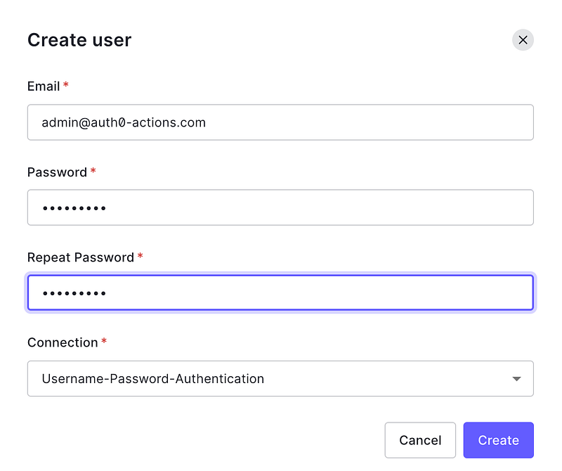 User ManagementTab in the sidebar. Click on theUserstab followed by theCreate UserOption. We’ll create 2 Users for our Action.