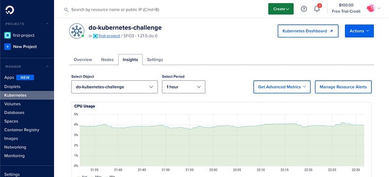 It’s a good bargain after a few hiccups! Once you get the hang of K8s it’s a good tool that helps you be more productive, though it can sometimes be an overkill for simple applications! I loved the dashboard offered by DigitalOcean which highlights insights in an amazing way. Take a look: